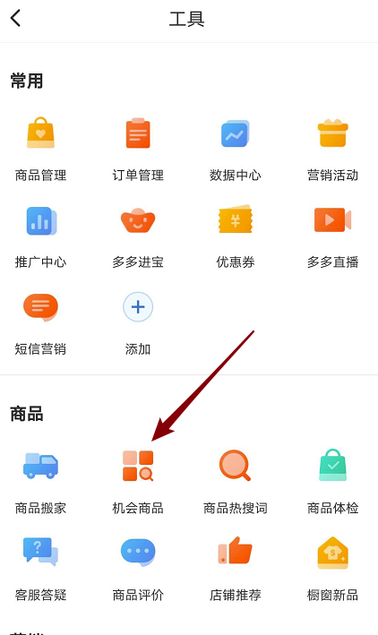 3、在出现的界面中,点击【机会商品】。