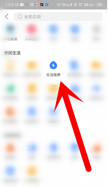 3、我们在全部菜单里,找到便民生活下的生活缴费。