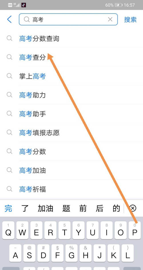 输入高考查分后点击搜索,如图所示找到高考查分戳这里。