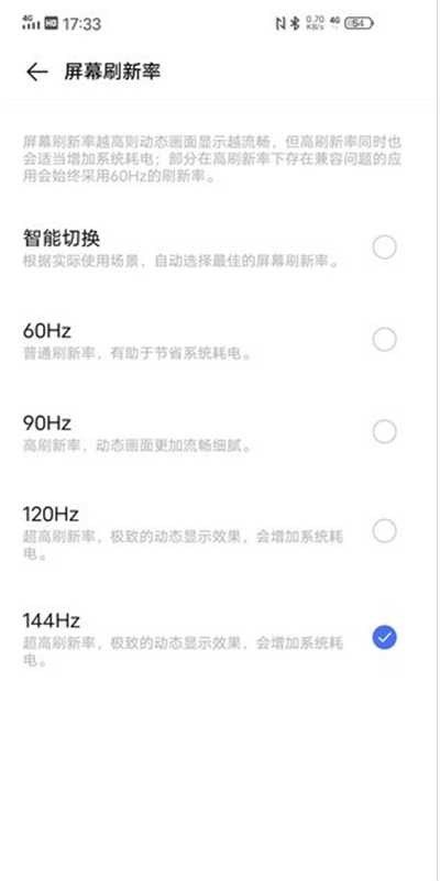 3、点击屏幕刷新率,选择我们想要的刷新率即可