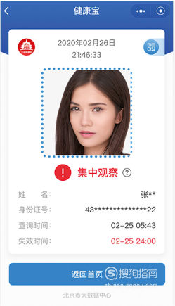 九、添加好之后,点击“健康状态查询”按钮,即可查询到您当日的健康状态。