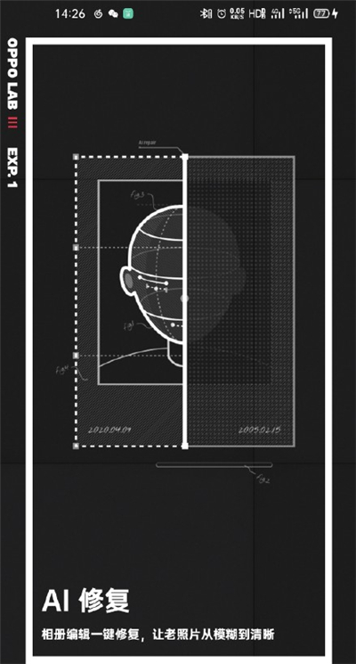 2、在软件内下滑即可进入ai修复功能,然后我们只需要将要修复的老照片进行上传,OPPO云端就能通过自研算法对其进行修复。