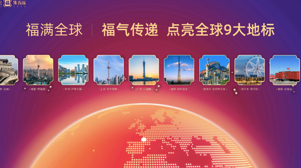 全家福是在去年花花卡基础上的升级,大奖从“帮个人还全年花呗”升级到“帮全家还全年花呗”,最高48888元。福满全球则是随着用户扫福、收集福字的增多,逐步点亮全球的九大地标建筑,以中国长城为起点,以南极长城站为终点,涵盖成都熊猫塔、杭州环球天幕、上海东方明珠、广州小蛮腰、迪拜哈利法塔、西班牙巴特罗之家、澳大利亚墨尔本之星等九大地标。