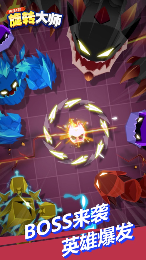 这是一款迷你动作冒险类RPG游戏,各式各样的怪物会从屏幕周围不断向你靠近,及时消灭小怪,扫清障碍,会使你在闯关的道路上更加轻松。小心那些体型巨大的Boss,每种Boss都会有着自己的特殊能力,消灭他们,你也将会获得丰厚的奖励。闯过特定关卡还会解锁全新英雄,每种英雄都会具备专属的攻击能力,不断升级增强他们吧,闯过更多关卡,你就是下一名旋转大师!