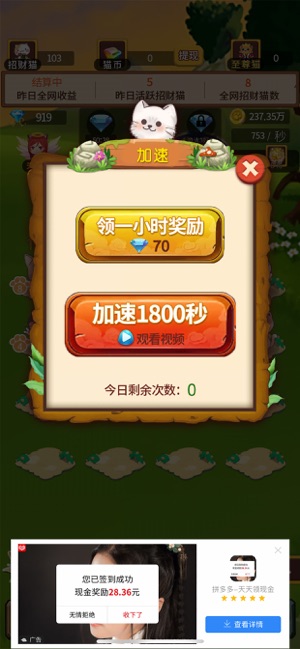 养猫乐趣多是一款可爱的放置养成游戏,每天登陆游戏完成任务后,既可获得相应的金币,还可以提现使用哦,下载试玩这款游戏,可以说休闲挣钱两不误。