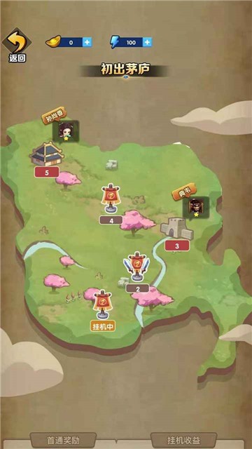 开局可以在豫章和会稽两地移动,击败孙韶、张昭、徐盛、张弘等人来获取初期资源。17岁时建议观看广告,因为广告奖励非常关键,可以获得七星宝刀。接着前往广陵、下坯挑战双铁锤及其他装备,如果没掉落也可以先回到南海、建安刷顾雍。